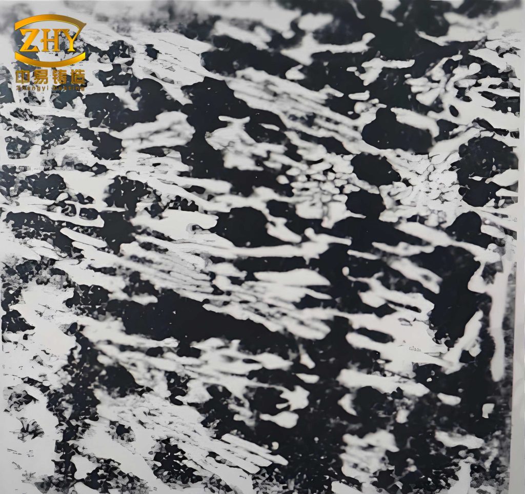 The microstructure of white cast iron plays a pivotal role in determining its mechanical behavior. In the as-cast condition, white cast iron typically consists of primary austenite and eutectic carbides, often forming a network-like structure. However, after multi-stage heat treatment, significant changes occur. I observed that the supersaturated carbon and alloying elements in the matrix precipitate as secondary carbides, while retained austenite transforms into martensite. This transformation is crucial for enhancing hardness without compromising toughness in white cast iron. To illustrate the microstructural evolution, I have included a visual representation below, which highlights the typical morphology of white cast iron after heat treatment.