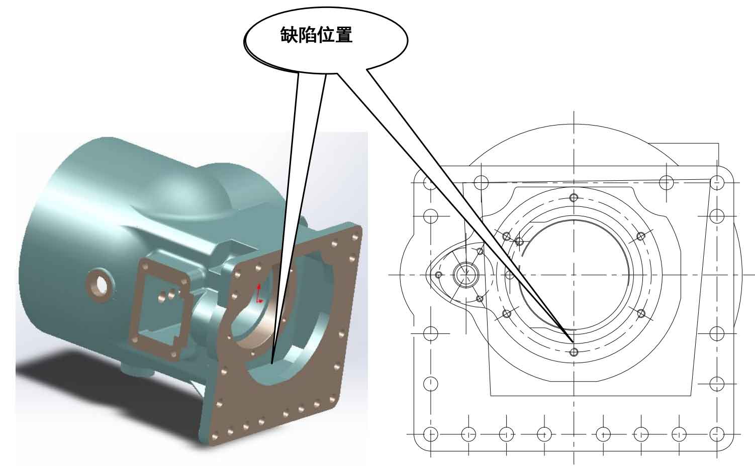 Through the observation of the oil leakage position, the inspection results show that the oil leakage parts are in the depression below the axle shaft oil seal seat in the axle housing, which is the wall thickness connection of the inter wheel differential, and other parts such as the axle housing connecting plate are well sealed without oil leakage. It is preliminarily judged that the oil leakage is caused by internal sand casting defects of the axle housing.