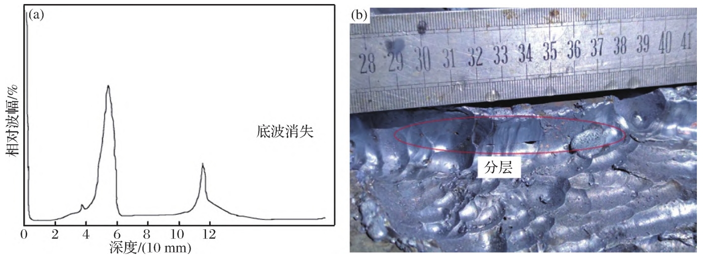 LaminationsSeries of parallel echoes with a certain spacing; varying echo amplitudeIncomplete fusion between metal layers during casting